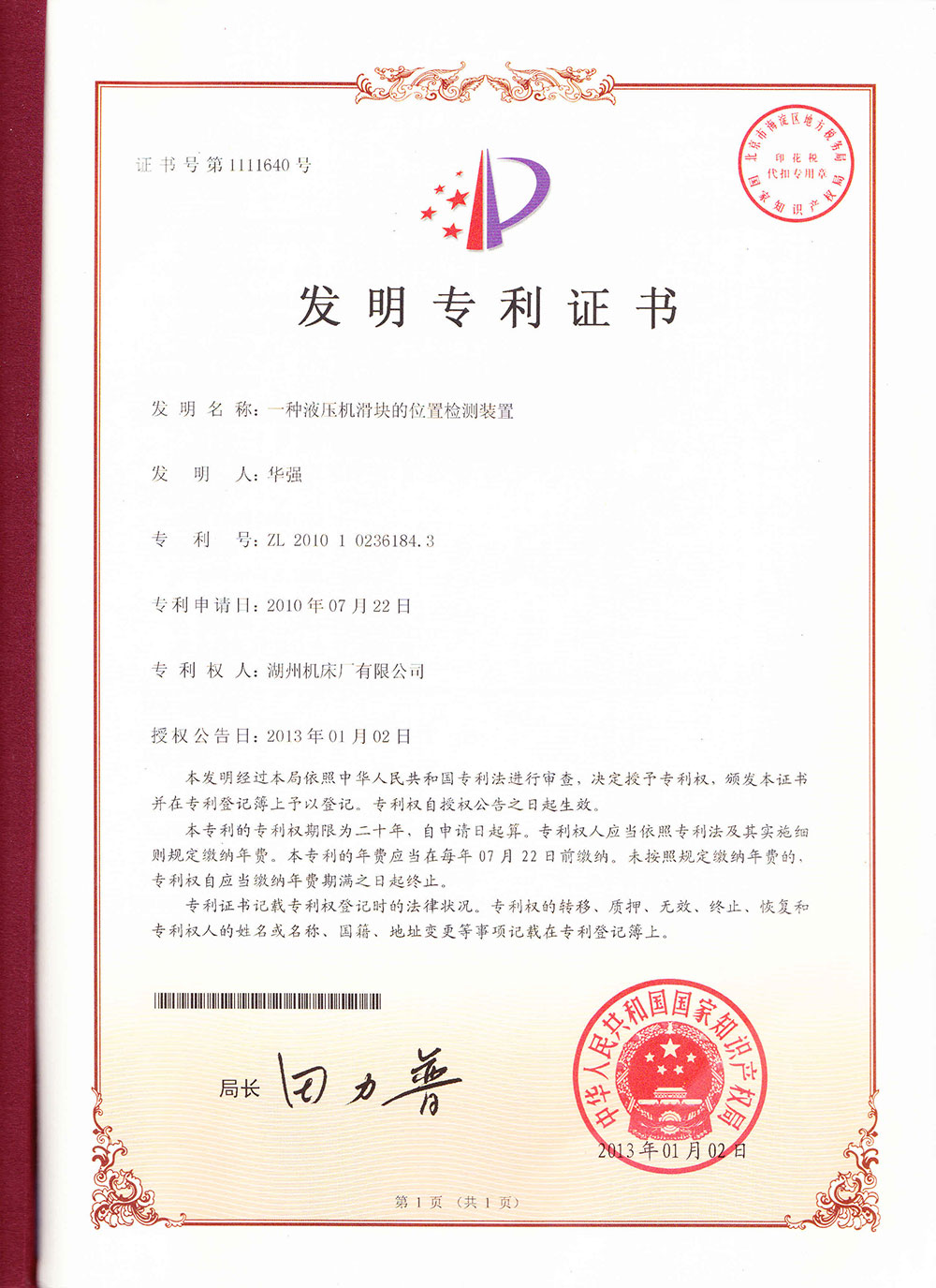 The company granted ISO9001 certification, set up a provincial R & D center and cooperates closely long-term with Zhejiang University and Shanghai Jiao Tong University to develop new product and technology. HMTW has succeeded in designing and manufacturing large-scale, digital, special-purpose, sophisticated hydraulic presses and production lines tonnage from 10 to 150000 KN for more than fifty years. Now the products with four-column, straight-side, C-frame and horizontal, are in wide applications to general-purpose, metal plate forming, bulk metal forming, pipe, powder ware, rubber and plastic ware,electric motor, vehicle wheel, special-purpose pressing, hot stamping for high-strength steel plate, interior high-pressure forming, automobile longitudinal beam, NC servo, precise punching, glass fiber reinforced plastics (SMC), carbon extruding,vehicle door edging, part straightening and glass ware etc. in total of more than 50 series and 400 varieties, a lot of products are entitled with National Important New Product and Provincial Key Manufacture Industry First-set Product. HMWT has obtained hundreds of national invention patents and rewarded with a title of “ Patents demonstration enterprise in Zhejiang " .